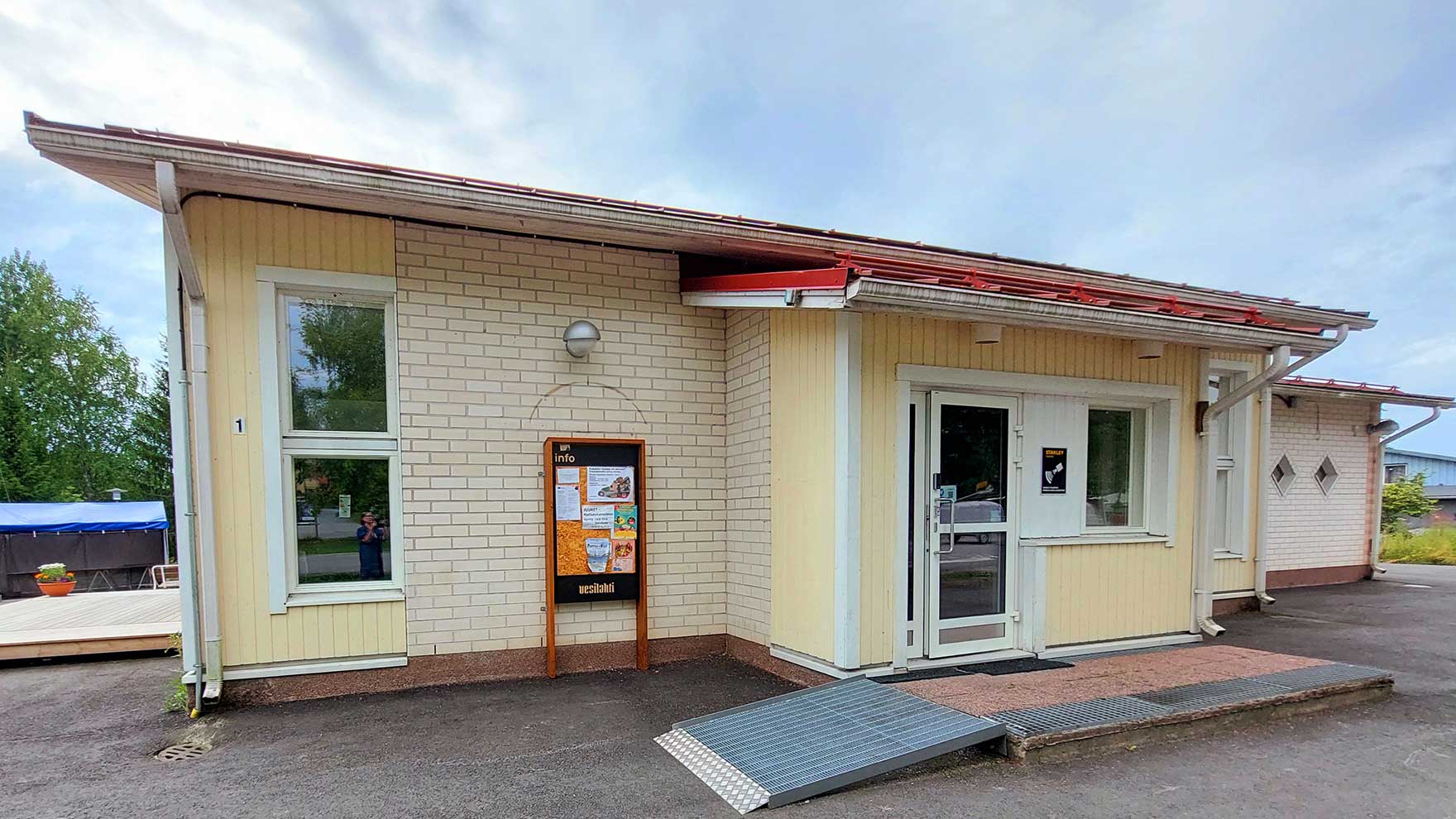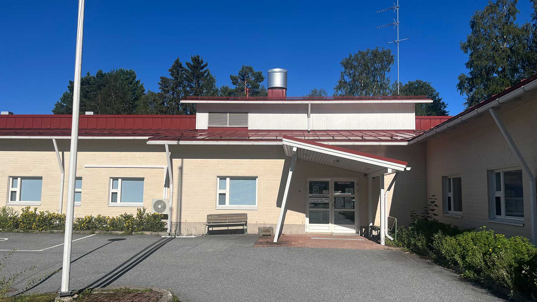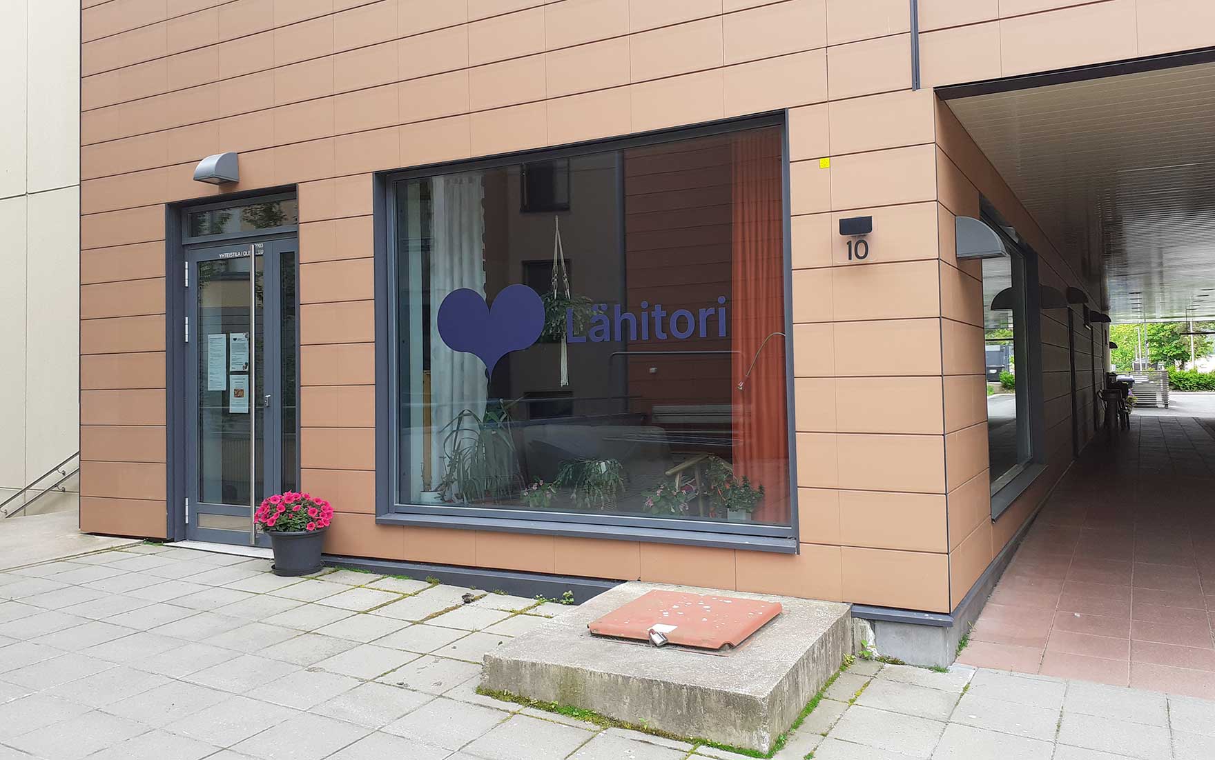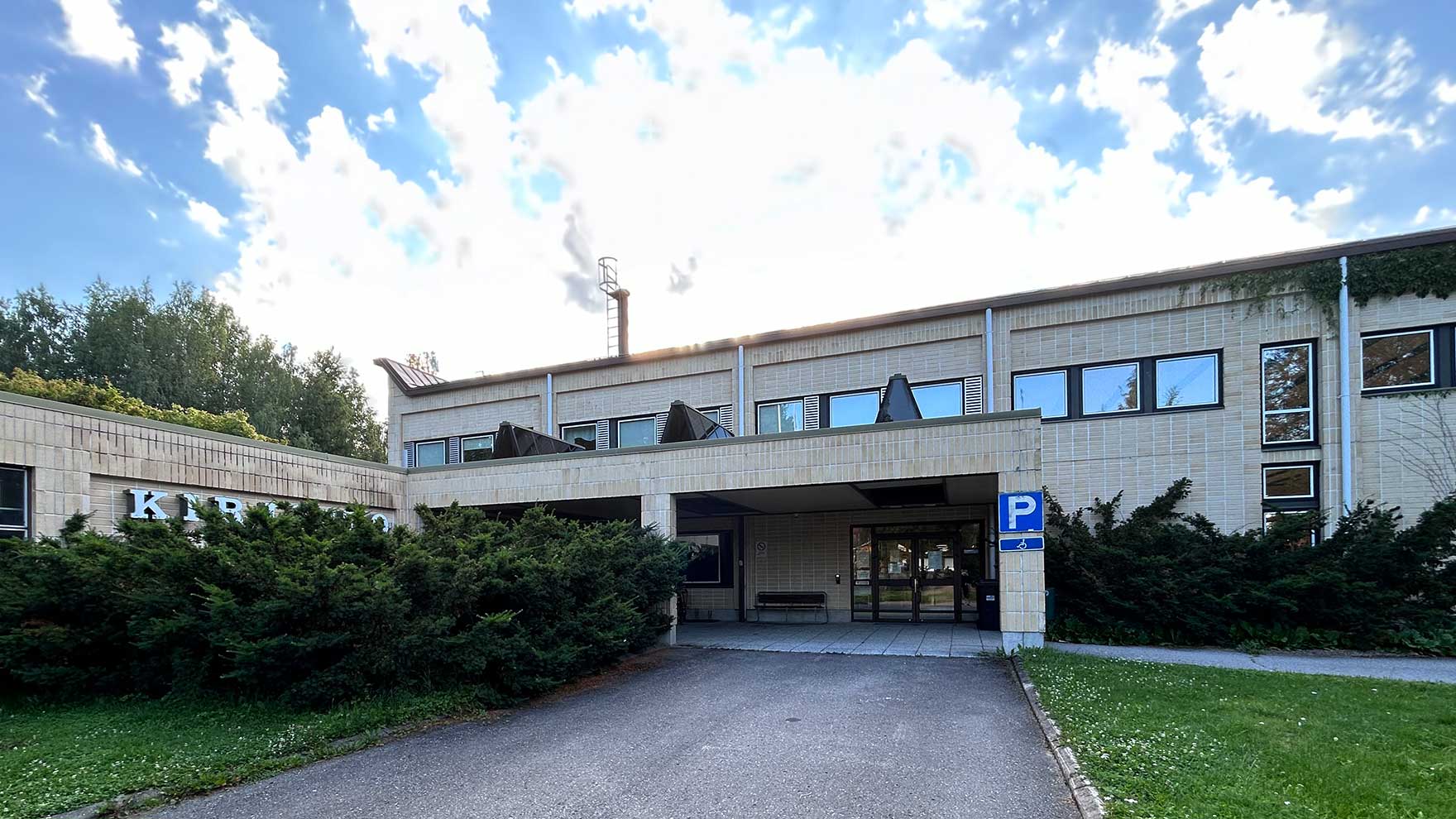 Sisäänkäynti Finn-Medi 5 -rakennukseen sijaitsee potilashotellia vastapäätä.
