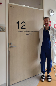 Sisäänkäynti Finn-Medi 5 -rakennukseen sijaitsee potilashotellia vastapäätä.