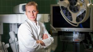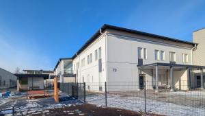 Sisäänkäynti Finn-Medi 5 -rakennukseen sijaitsee potilashotellia vastapäätä.